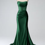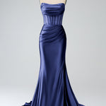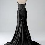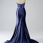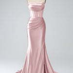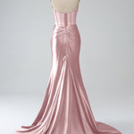 Blush Pink Mermaid Strapless Pleated Corset Long Prom Dress with Slit