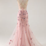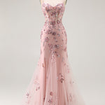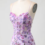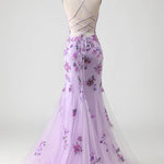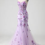 Purple Mermaid Appliqued Corset Long Prom Dress with Beading