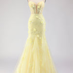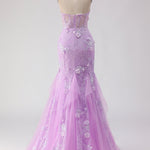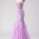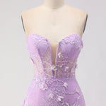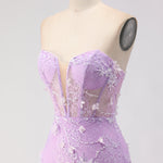 Purple Strapless Mermaid Lace Corset Long Prom Dress with Beading