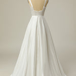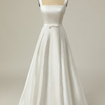 Simple A Line Square Neck White Long Wedding Dress